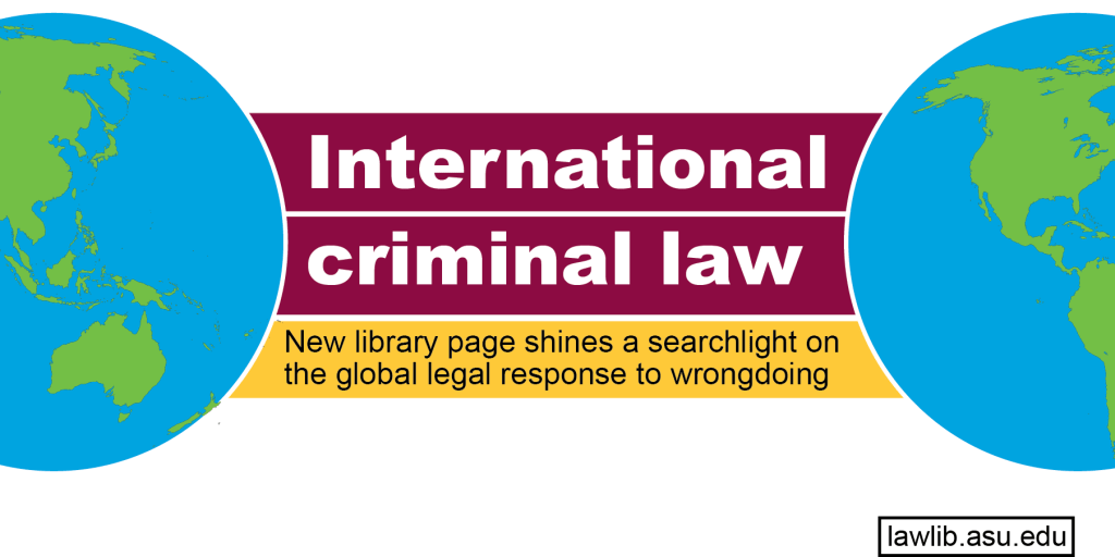 The Ross-Blakley Law Library’s Criminal Law and International and Foreign Law research guides have a new criminal element: The International Criminal Law page. Both guides have been enhanced by this new addition that helps introduce and explain a very different form of criminal law.